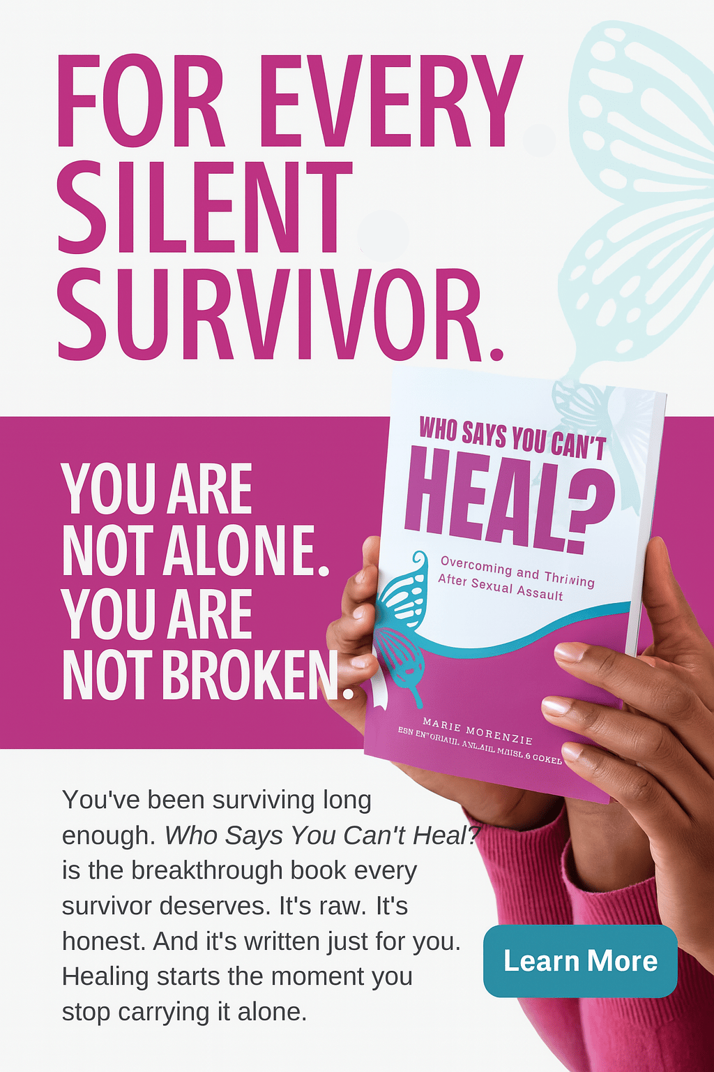 "Who Says You Can't Heal?" explores the profound process of developing the passion to heal and thrive after the harrowing experience of sexual assault. It aims to empower survivors and inspire resilience.