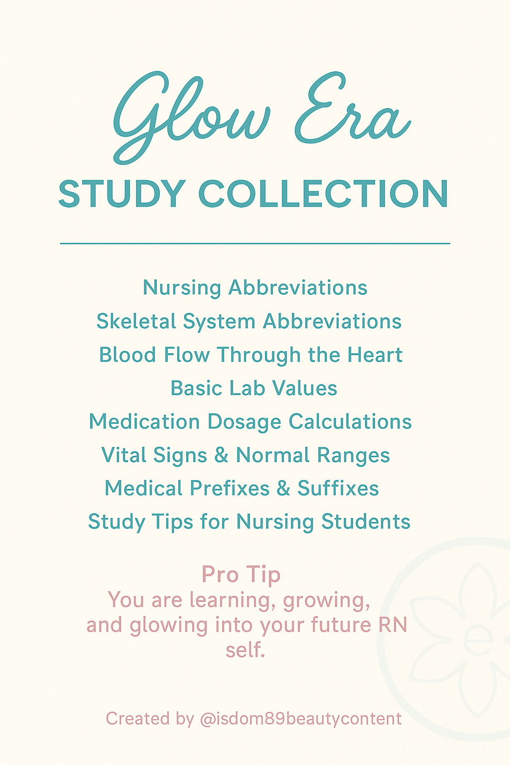 Elevate your nursing journey with the ✨ Glow Era Study Collection ✨ — a beautifully designed printable bundle made for Future RNs who want to study smarter, stay organized, and keep glowing through every lesson.