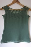 A beautiful, delicate top that’s quick to knit - even in laceweight yarn. The ideal Summer knit, something lightweight that still looks stunning. The lace pattern looks impressive but is simple to knit. This really is a top you can dress up or down. This tank is knit from the top down with a yoked construction. Stitches from the front and back of the yoke make up the body, and extra stitches are cast on at the underarm. The hem and sleeves have an attached i-cord edging to keep everything neat and to stop edges from curling. There are more stitches at the front than the back to provide a better fit and to give a pretty scoop neck. The pattern gives 10 sizes - to fit bust 32 (34, 36, 38, 40, 42, 44, 48, 52, 56)“.