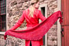 Indulge your own deep love by knitting your Amortentia shawl with a favorite color or irresistible yarn. This shawl is cast on with many stitches at the ruffled edge, which is knit with optional beads for extra sparkle and weight. By the end of the ruffle, the number of stitches is reduced by 2/3, then like the twists and turns of love, the edging and body are divided by a garter ridge, and the stitch pattern reverses itself into a wide rib. The long and narrow body is knit with short rows to the top edge, and finished with simple garter stitch. Instructions for two sizes are given, and differ only in the frequency of the short rows.