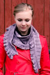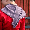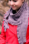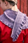 Yarn: Malabrigo Yarn Silky Merino (51% silk, 49% merino; 150 yards/50g): 2 (3) skeins; S shown in Lavandula, and L shown in Amoroso. The Silky Merino grows substantially when blocked, and makes a very drapey luxe shawl. For a similar result, choose a single ply yarn with significant silk or other non-springy fiber content.