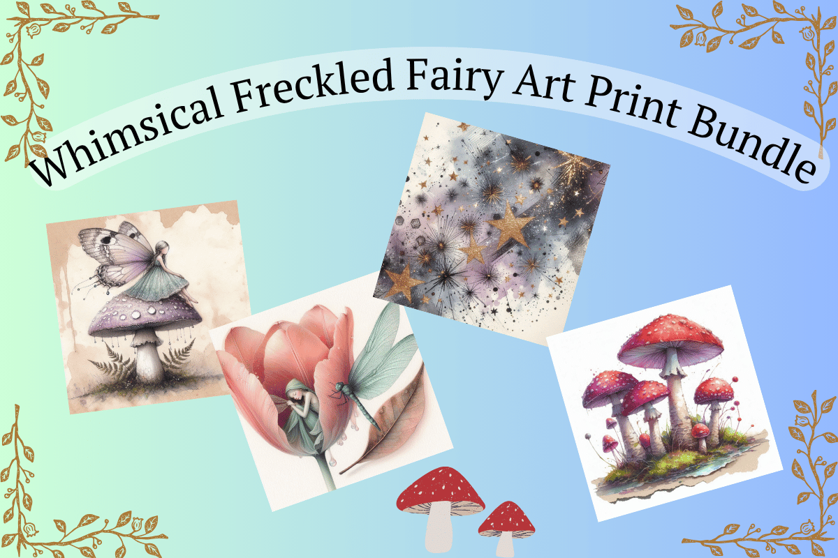 Whimsical Freckled Fairy Art Print – Ethereal Watercolor & Pencil Art, Enchanted Fantasy Digital Download