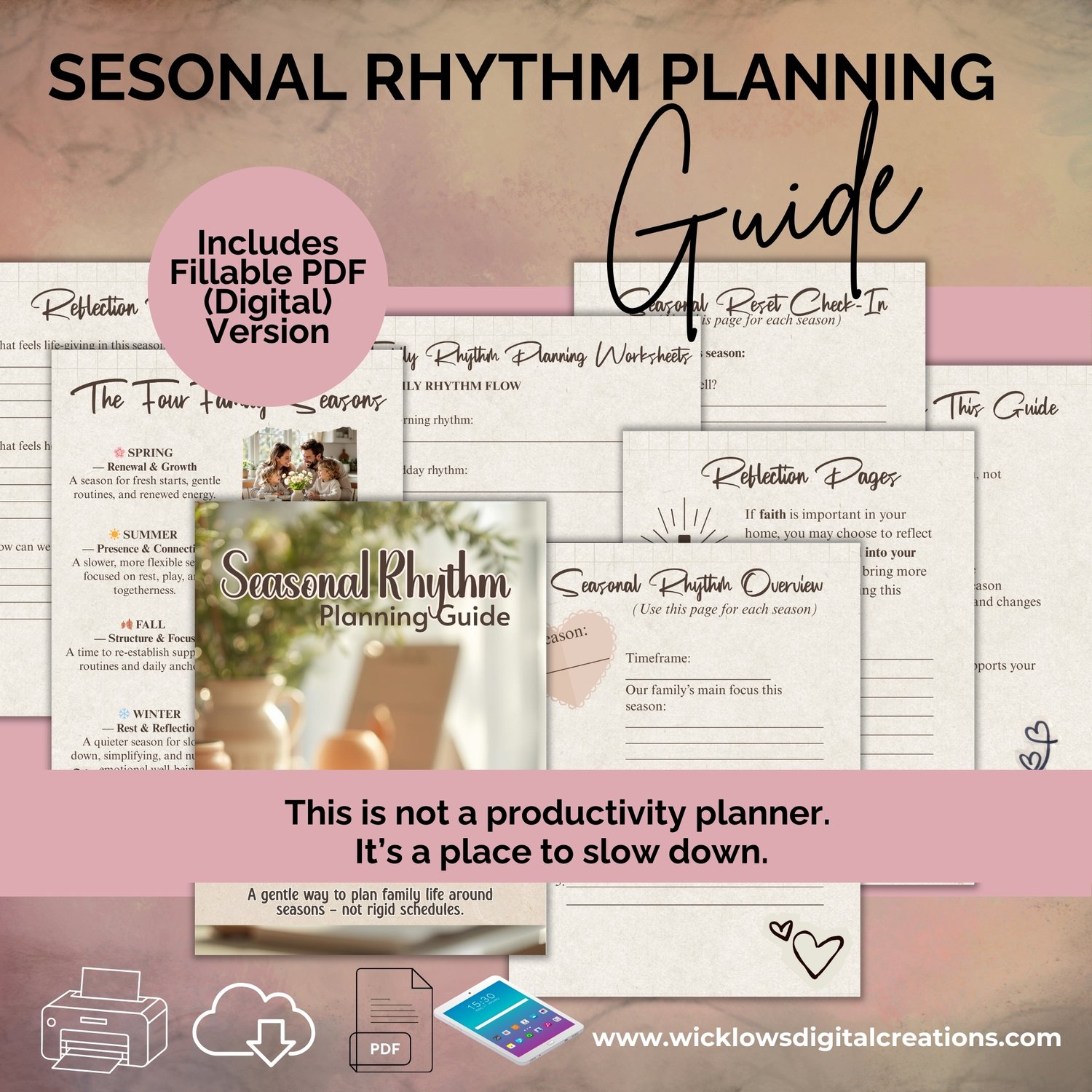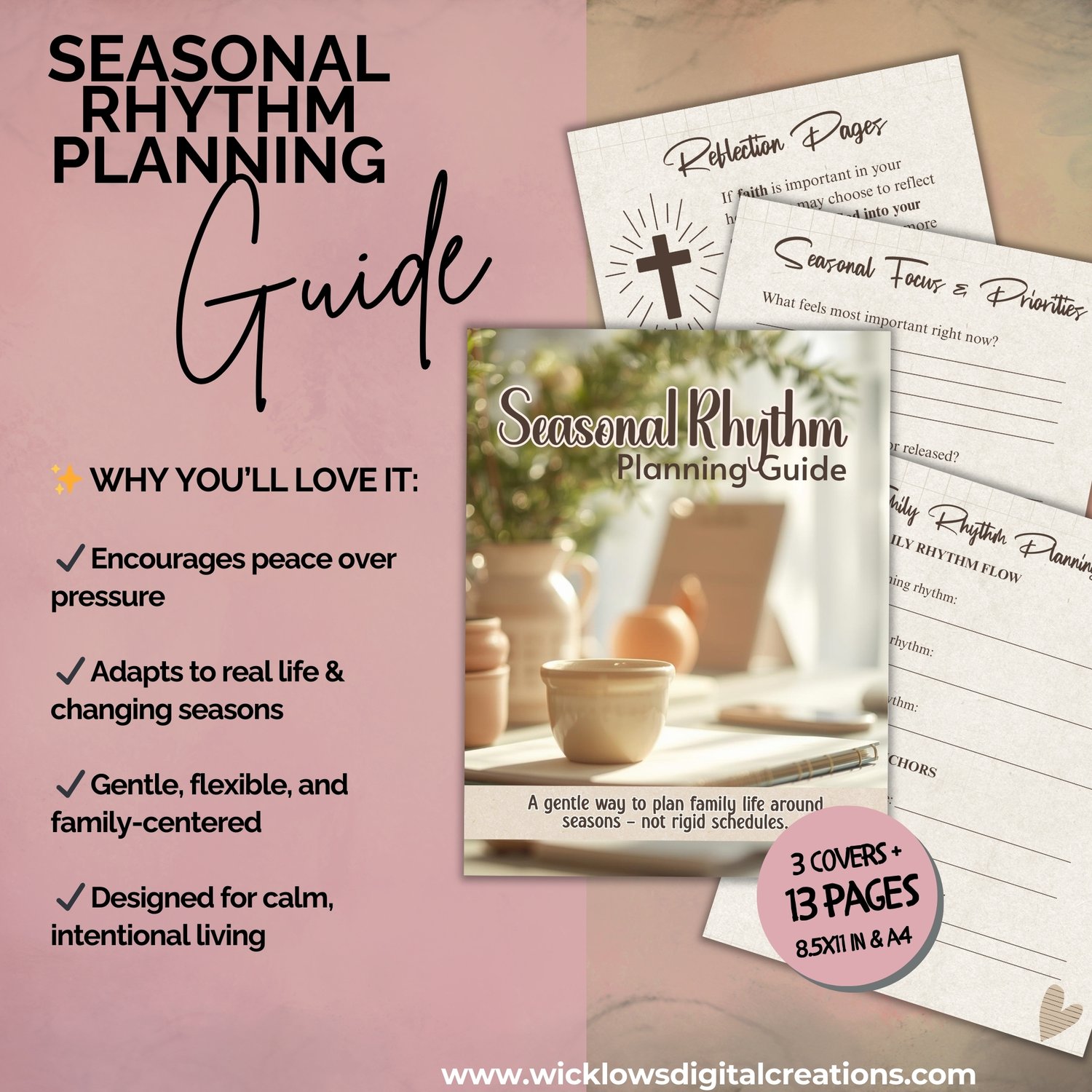 Instead, you’ll find gentle structure, open reflection space, and flexible rhythm planning that adapts as your life changes. This is not a productivity planner. It’s a place to slow down.