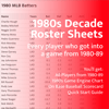 Introducing the 1980s Decade Roster Sheet set! 10 complete seasons in one package. You'll get every player who played from 1980 to 1989 in the big leagues--any pitcher or position player who got into a game during the decade. It's a replay gamer's dream.