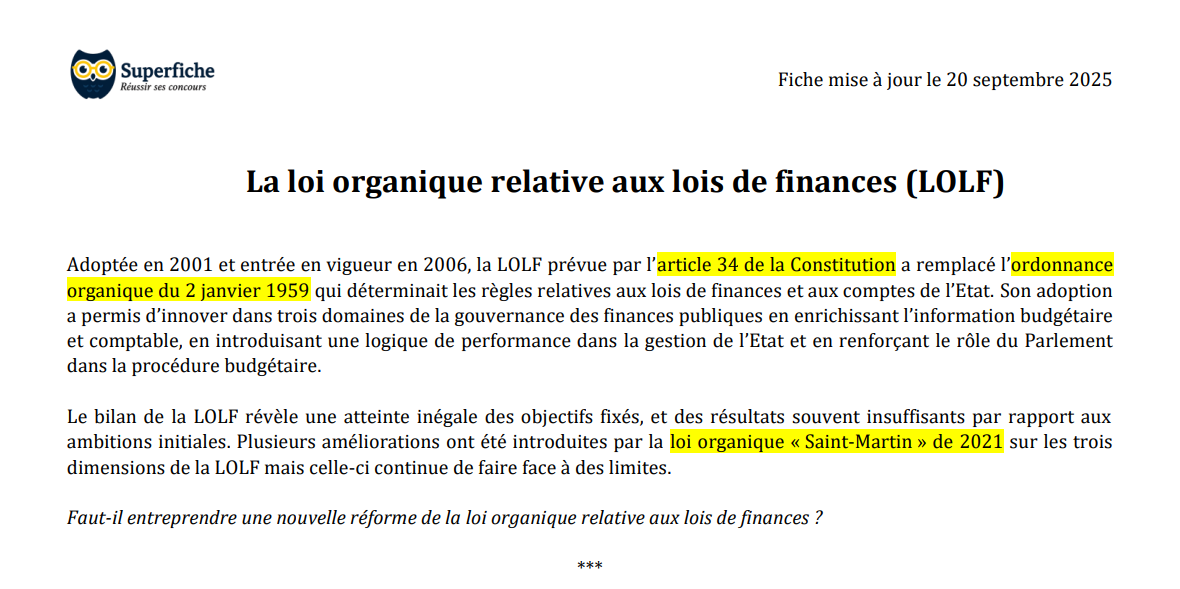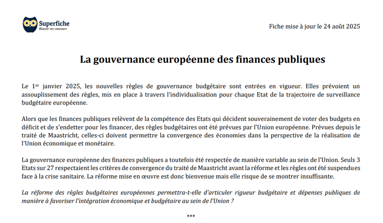Fiche de préparation aux concours administratifs publiée par Superfiche.