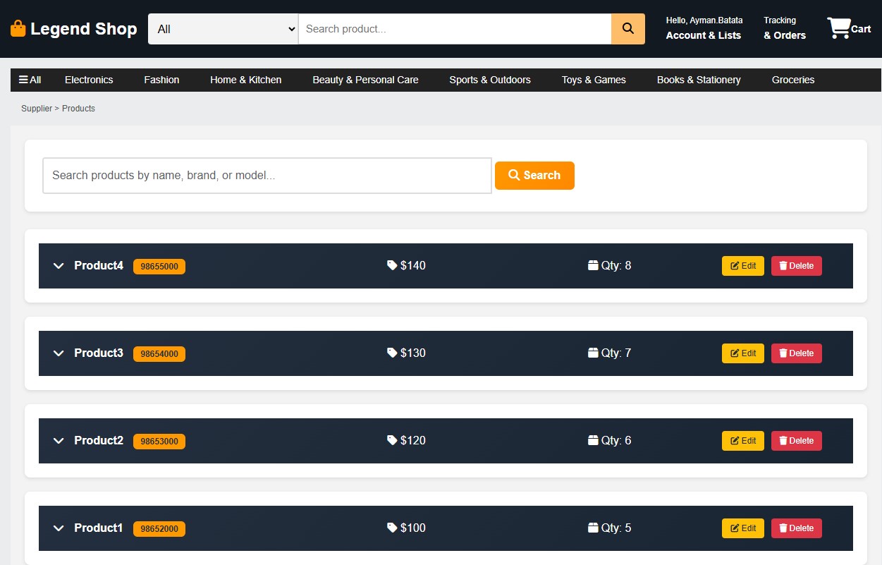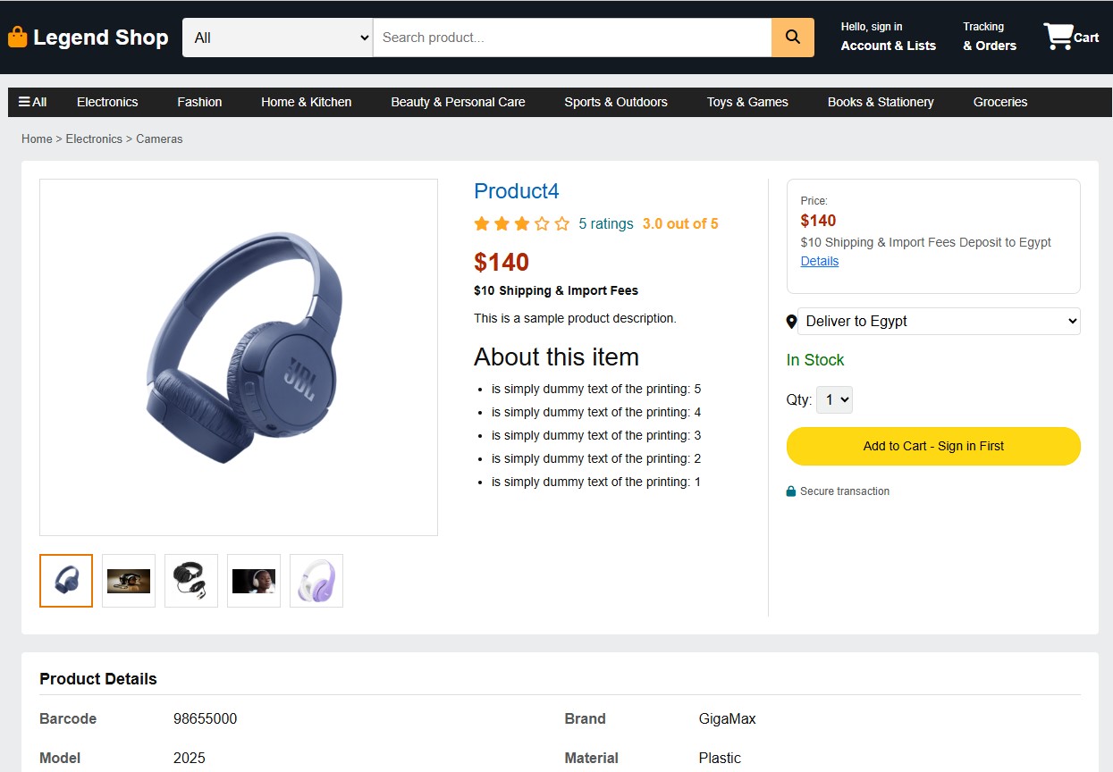 LegendShop is a fully developed e-commerce web application inspired by the core functionality of Amazon.