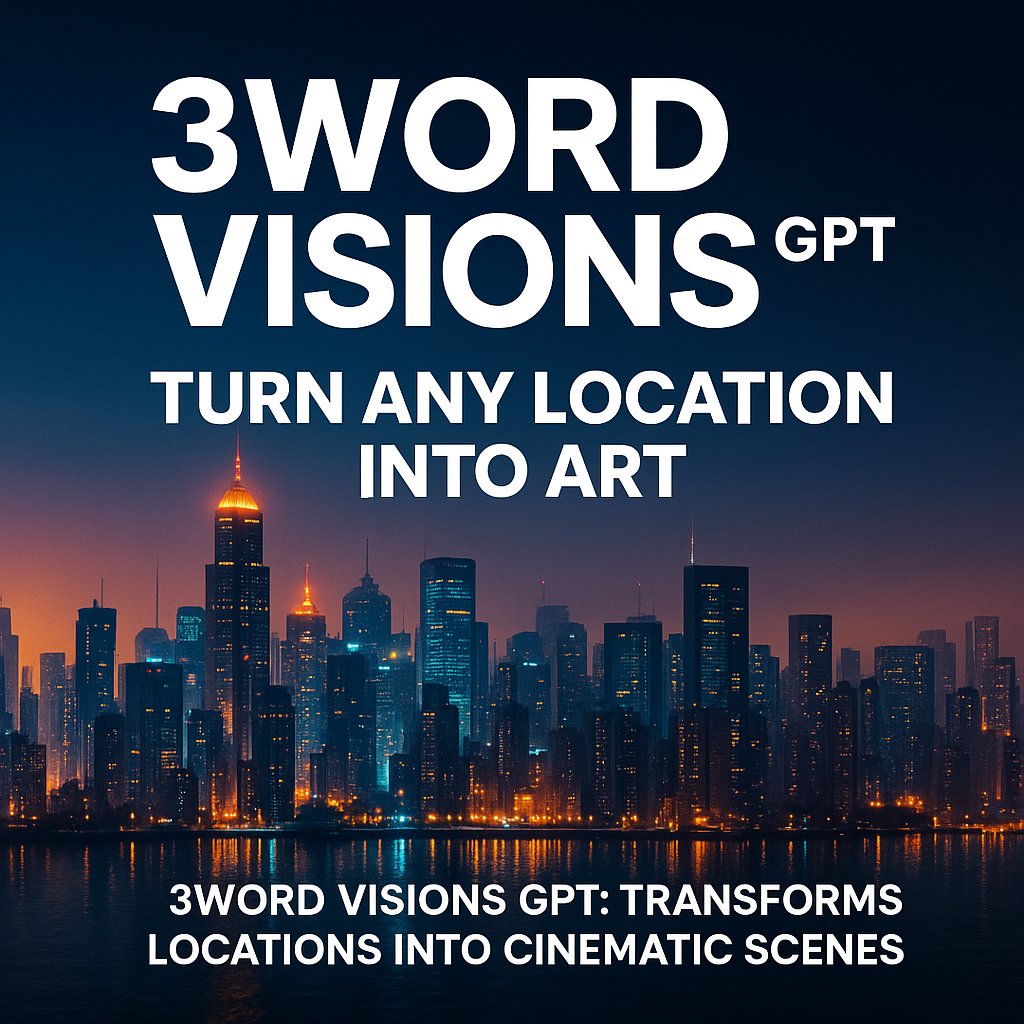 3Word Visions GPT is a creative AI assistant that transforms real-world locations into cinematic prompts for image and video generation. Using actual What3Words coordinates, this tool helps artists, creators, and storytellers design hyper-specific scenes based on geography, mood, style, and emotion.