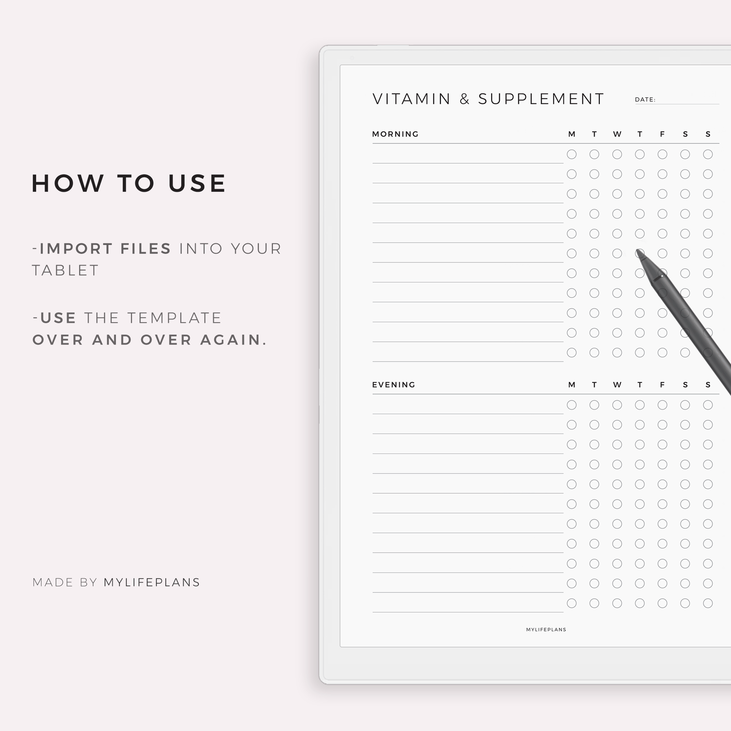 Daily Vitamin Tracker Template for Remarkable, Supernote, Kindle Scribe, Boox, Kobo