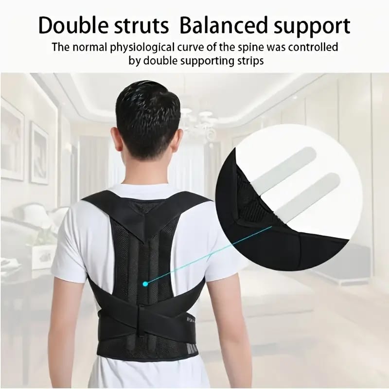 Posture Corrector for Adults | Invisible Back Support Brace | Black Polyester Fiber | Adjustable Upper Back Straightener with Shoulder Straps and Lumbar Support | Comfortable & Breathable Design for Improved Posture, Daily Wear Brace | Ergonomic Design | Breathable Polyester, Back Brace