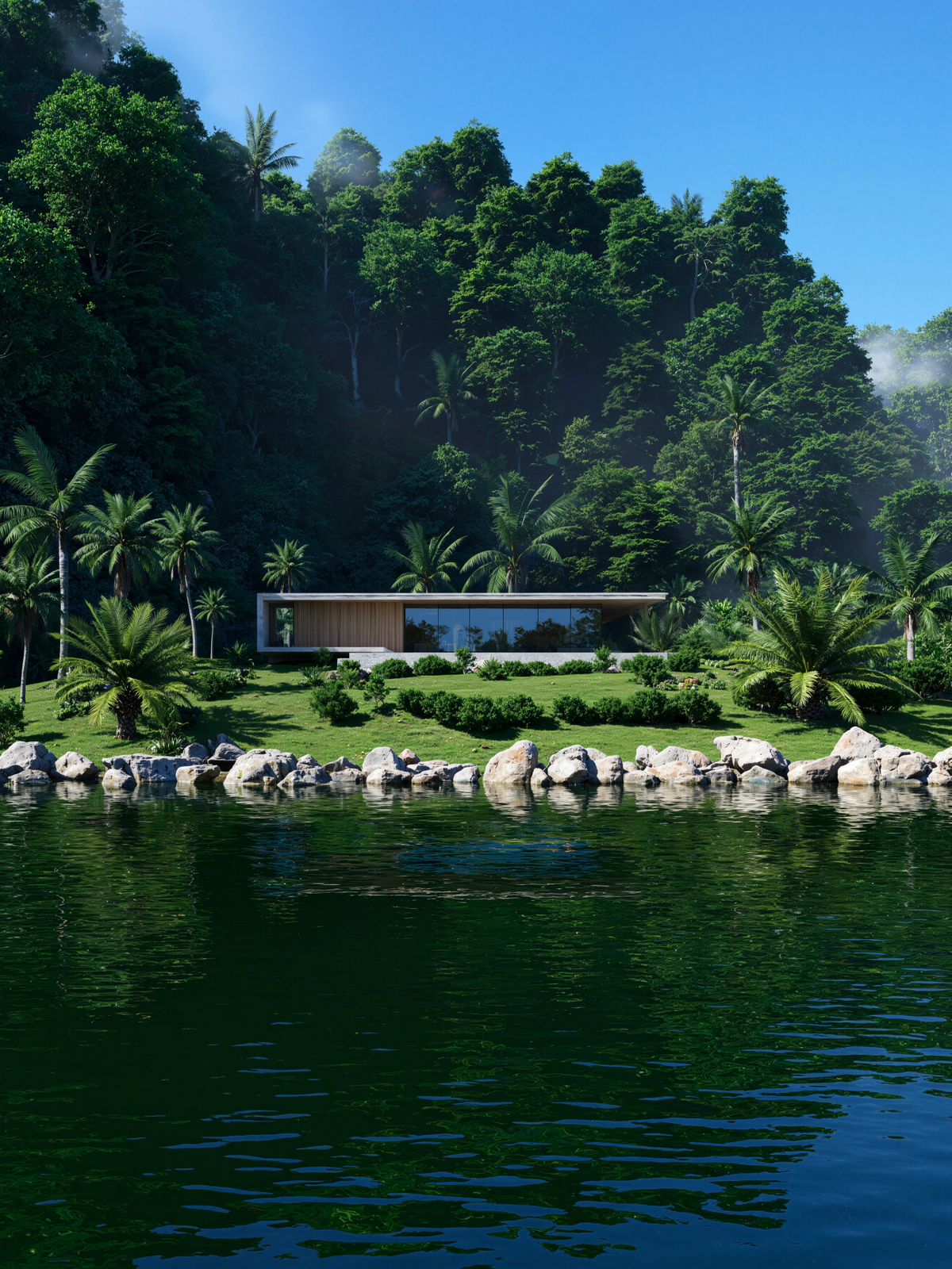 Rainforest Villa - Scene created by scanned mossy ground models and scatters, including background forest and grass field offering 2 options of weather condition with realistic settings and assets. For the post process there is used D5 AI style transfer (realistic) Spring - Details and settings in attached PDF file.