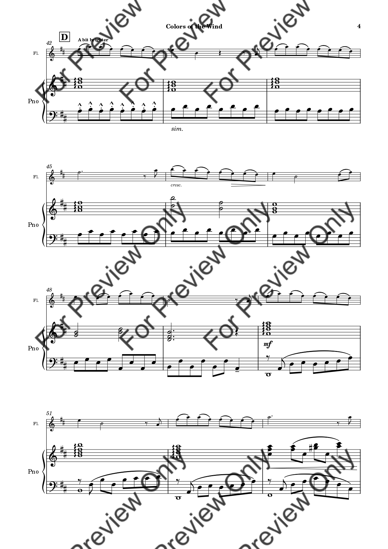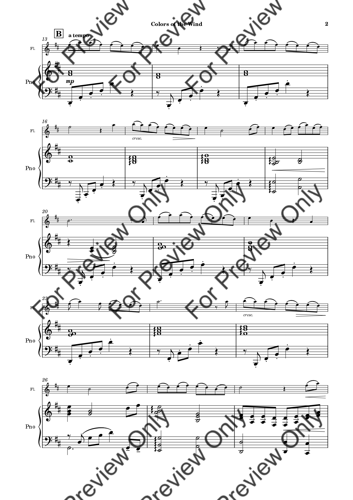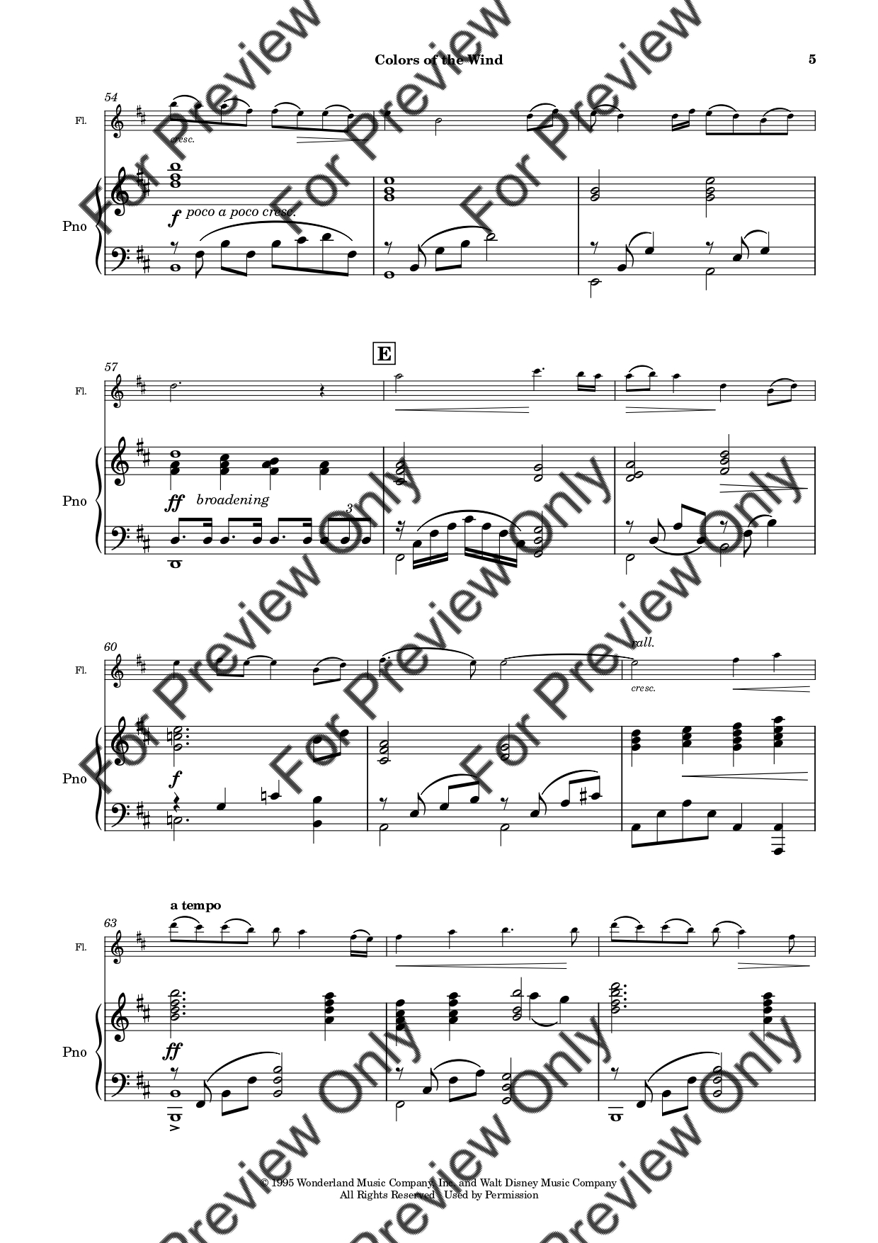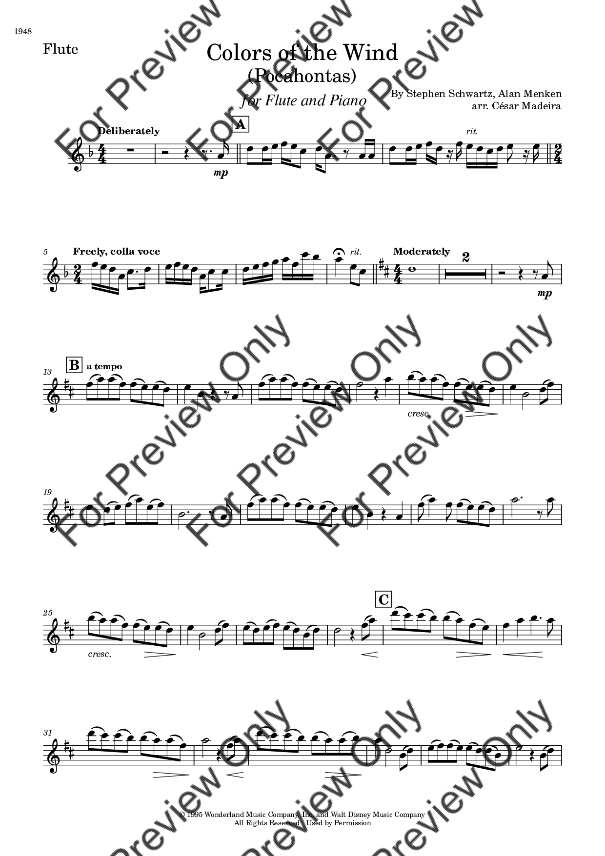 Colors Of The Wind (from Pocahontas) by Alan Menken. Arrangement for Flute and Piano. With Full Score and Individual Parts. Have fun!