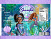 The Mermaid-themed editable party favor design and mockup for items such as water bottles, chips, Rice Krispies, Capri Sun, candy bars, Pringles, and boxes is a whimsical and enchanting template set, perfect for any under-the-sea celebration. Each design features a vibrant and magical color palette of blues, purples, pinks, and greens, capturing the mystical and fun essence of mermaids. The water bottle labels, chip bags, Rice Krispies wrappers, Capri Sun pouches, candy bar covers, Pringles wraps, and favor boxes are adorned with beautiful graphics such as mermaids, seashells, starfish, bubbles, and underwater flora. Customizable text areas allow for personalized messages, names, and event details, ensuring each favor is unique and tailored to the celebration.