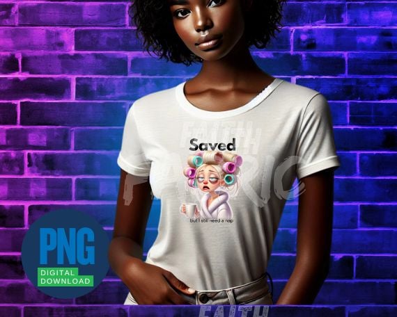 Bring humor and faith together with this "SAVED but I Still Need a Nap" PNG digital download!