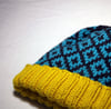 Merola is knit from the bottom up in the round, the ribbing is folded over for extra warmth but you could of course knit a shorter ribbing if you prefer.