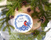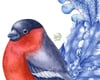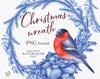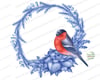 Bullfinch and Blue Christmas wreaths. Winter and New Year decoration. Nursery, home, winter wedding decoration.
