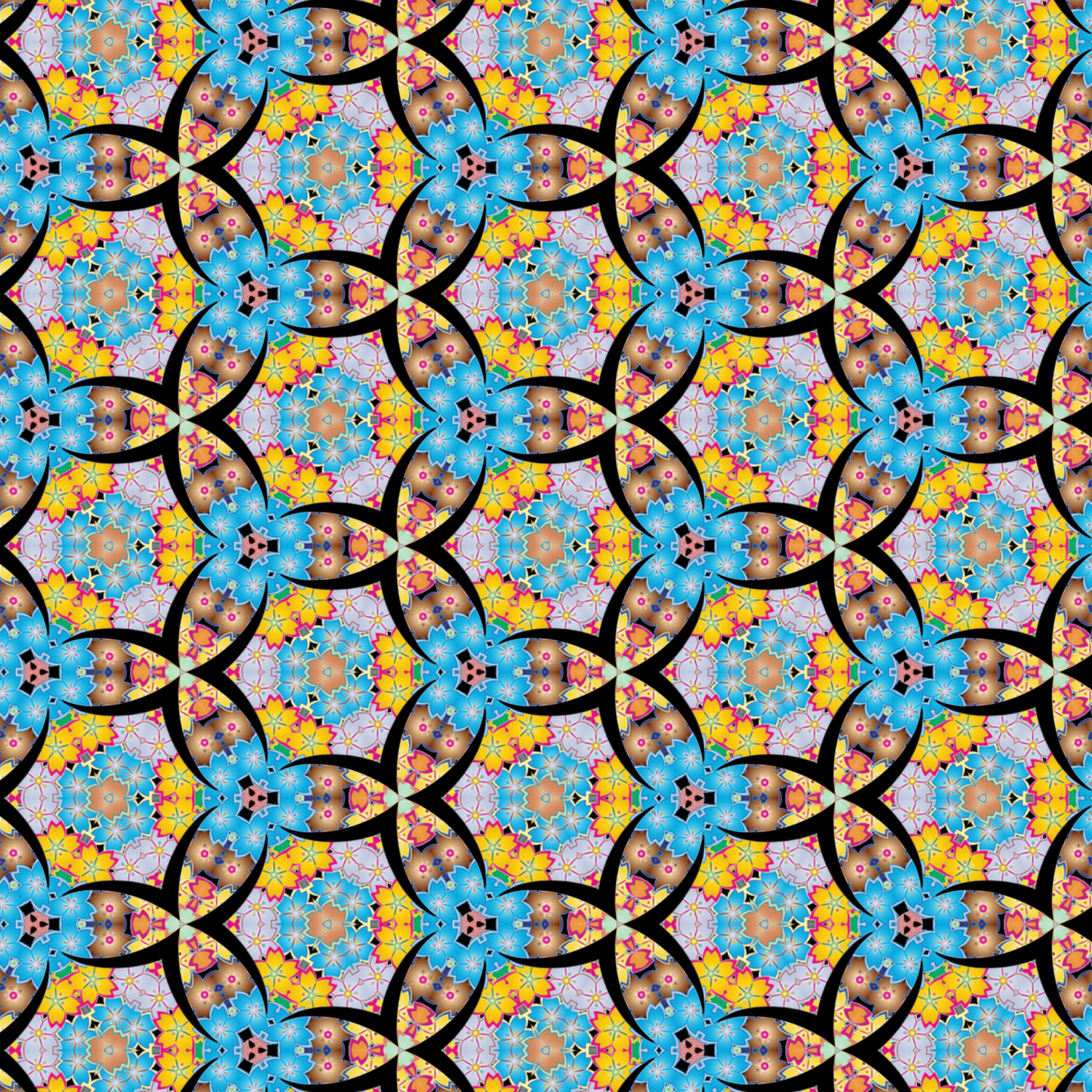 Floral Circles Geometric Digital Seamless Pattern
