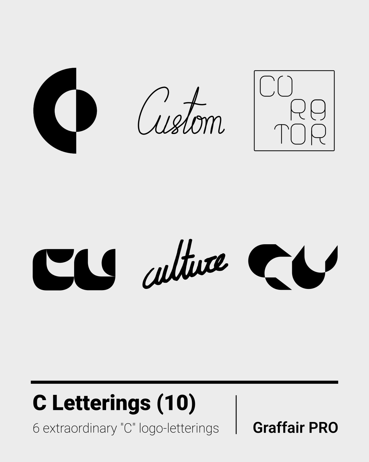 C Letterings (10): The tenth set of "C" logo/letterings with 6 original designs. These letterings are included among 800 other extraordinary ones in the "800 SVG Letterings" bundle edition.
