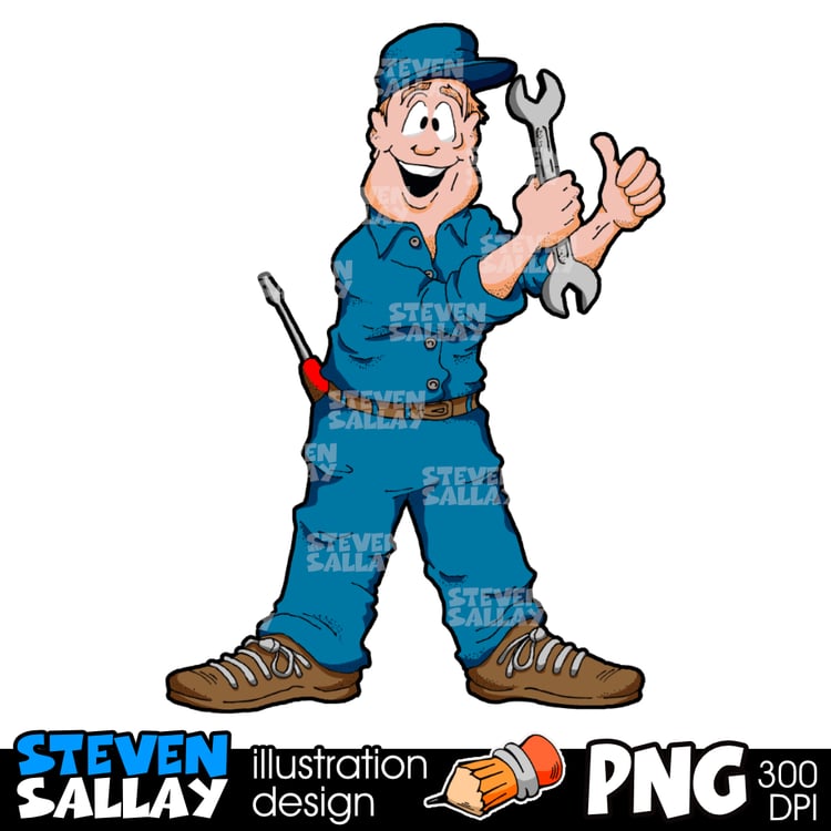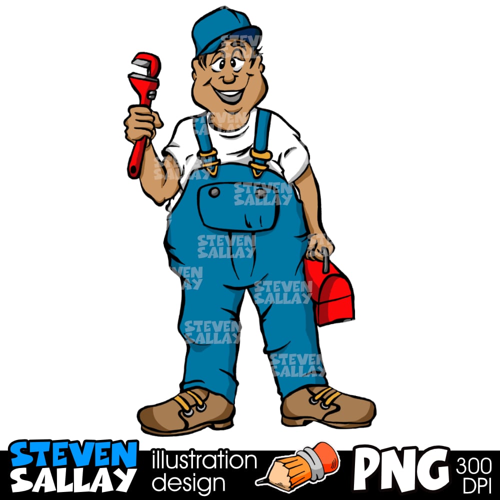 Add humor and personality to your projects with this cartoon plumber clipart illustration. This high-quality plumber character graphic is perfect for plumbing business marketing, advertisements, websites, newsletters, social media, stickers, T-shirts, presentations, and educational materials.