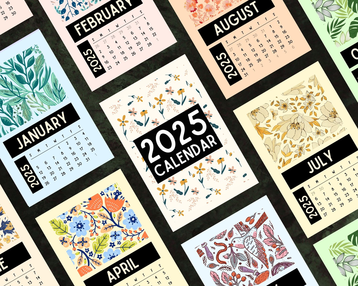 Leaf Calendar 2025, Free Digital Calendar, Calendar 2025, Digital download