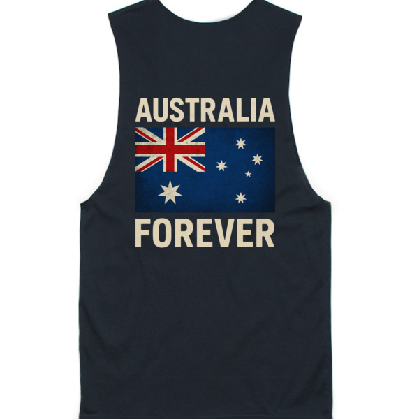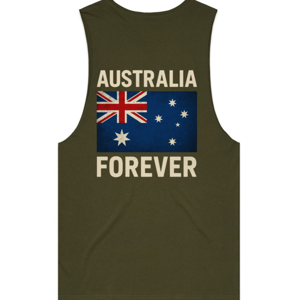 Based Australia Forever Tank/Singlet. The Tank is shown in the black & white and the singlet is shown in army & navy. (NOTE: The tank/Signlet is more expensive than most tees because it has a design front and back so it costs more to make)