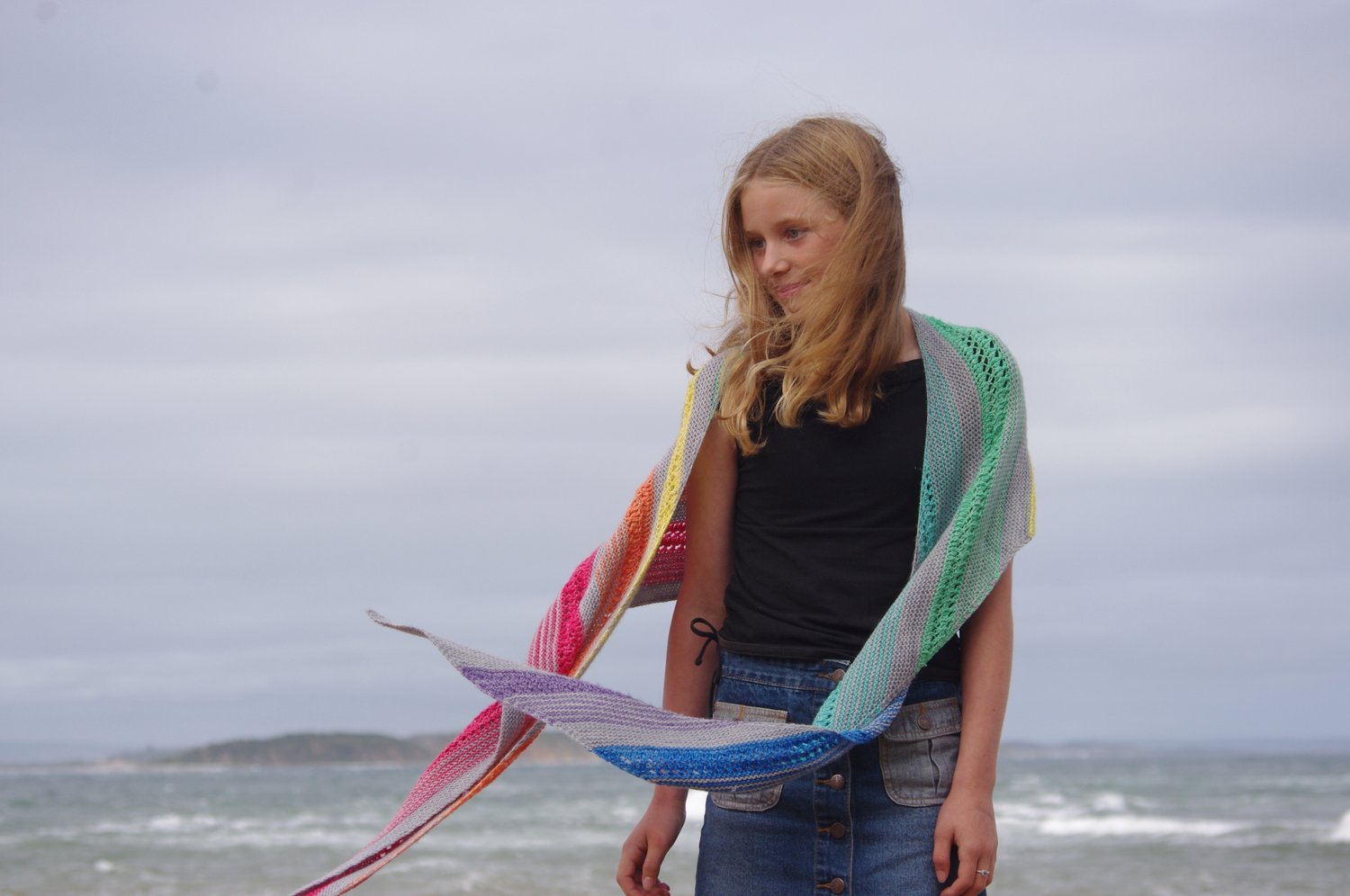 This is an asymmetrical shawl worked from edge to edge. It begins with a small number of stitches. Increases and decreases are used to create the shape of the shawl as it expands in width.