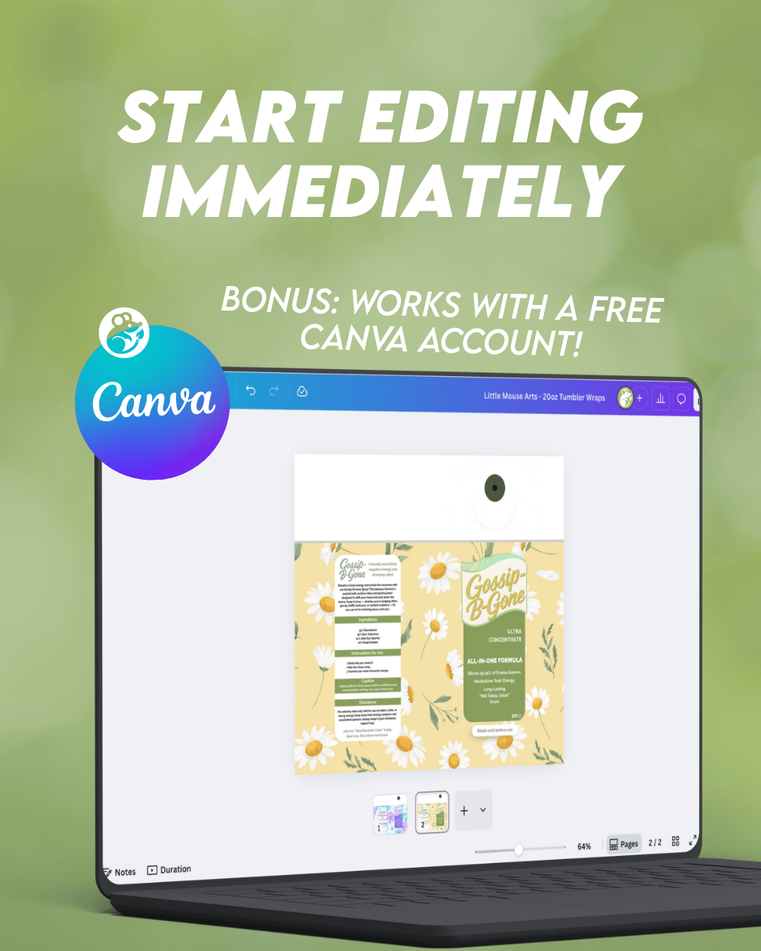 Spray Bottle Style Tumbler Wraps – Editable in Canva!