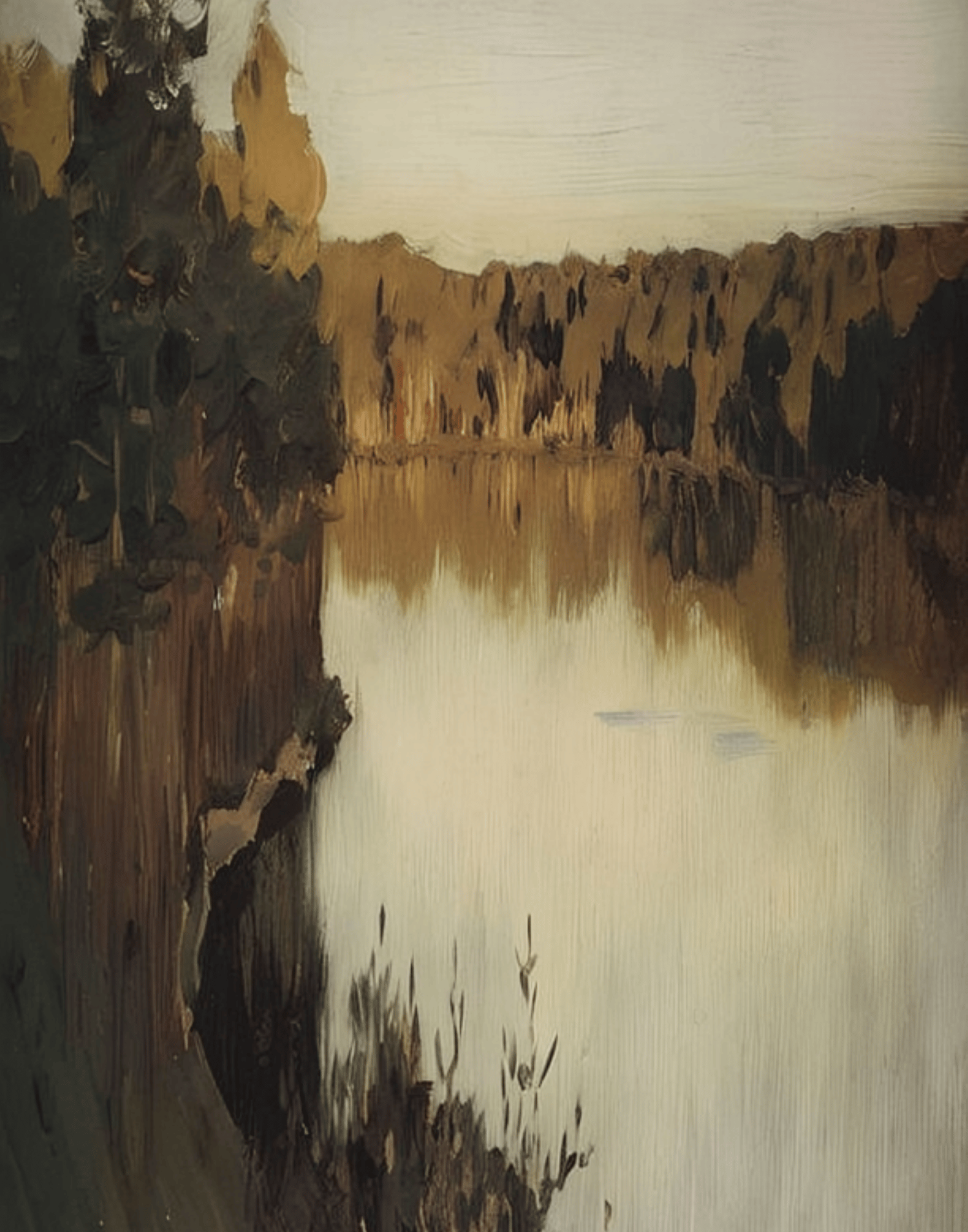 Serene Lake Painting, Lake landscape, Dusk, Vintage Landscape, Nostalgic Nature, Cool Nature, Rustic natural Landscape, Painting.