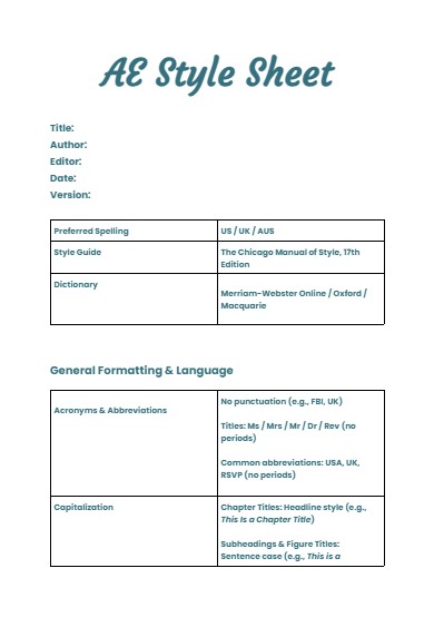 Author Style Sheet Template | Editable Book Editing Tool | Story & Style Consistency Guide | Fiction and Nonfiction