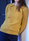 The live stitches are then picked up for the body and sleeves, and the sweater is worked top down.