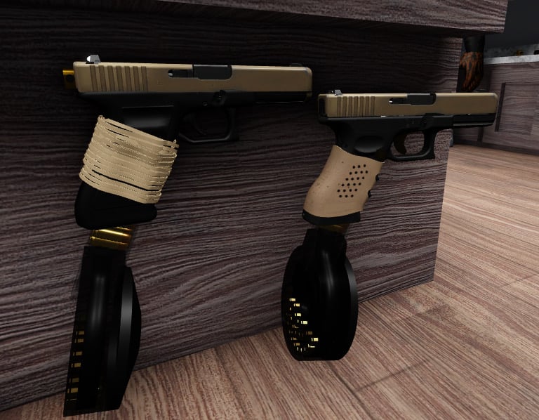 These are both tan glocks with different grips g17 has rubber bands and golden selector switch although the g40 has a grip VIRTUAL GUN