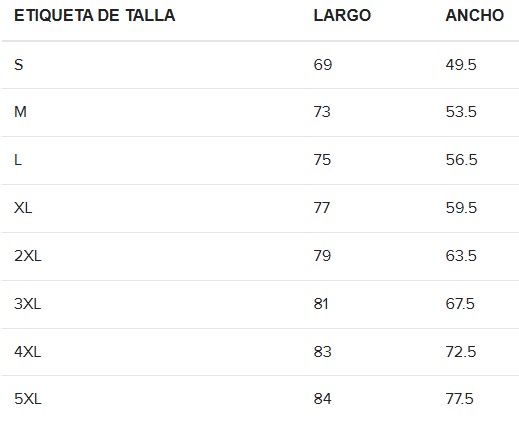 Tabla de tallas en CM.