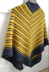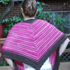 Worked from the top down, beginning with a garter tab, this shawl features stripes incorporating short rows using wrap and turn (w&t). Because of the nature of garter stitch, however, wraps blend in easily and do not need to be picked up on subsequent rows. Because of the way the stripes alternate, it is easy to make the shawl larger or smaller to accommodate your yarn supply. The bottom edge of the shawl is finished with a picot bind off.