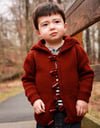 Cartero is the coordinating children’s version of Mister Postman—with lots of kid-friendly details! A big snuggly hood makes it extra cozy, and loop-and-toggle closures at the front are playful and easier for little hands to work. The vertical pockets and garter stitch detail at raglan lines and faux side seams match the grown-up version, so boys and girls from baby to age 10 can coordinate with mommy.