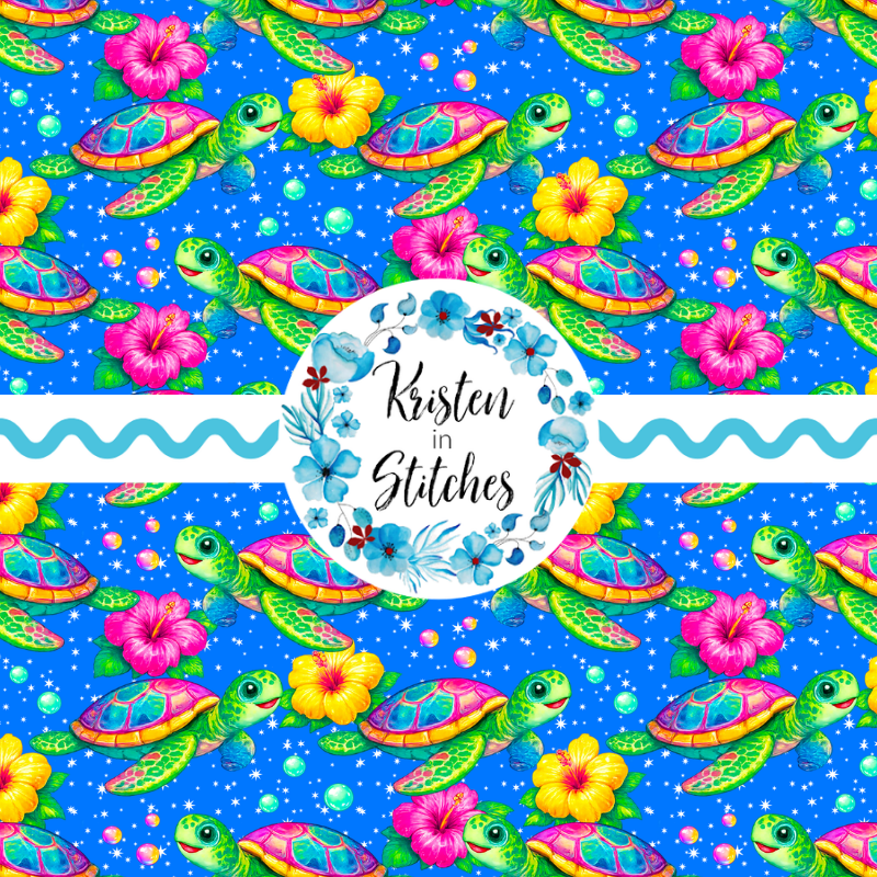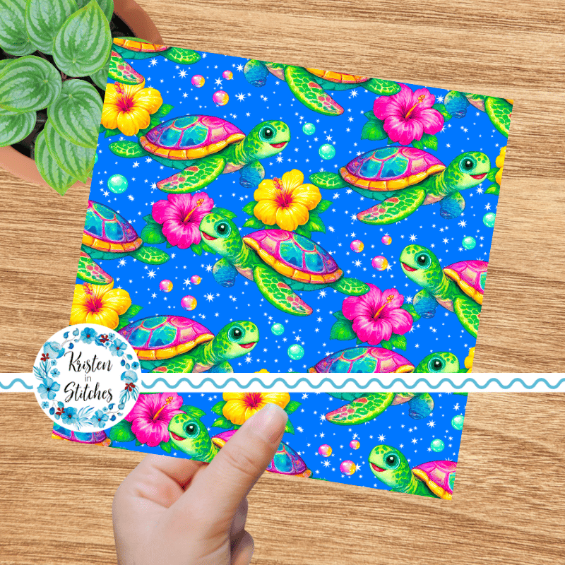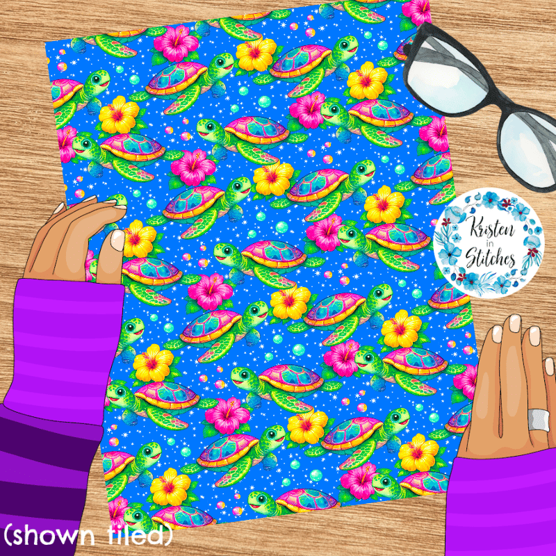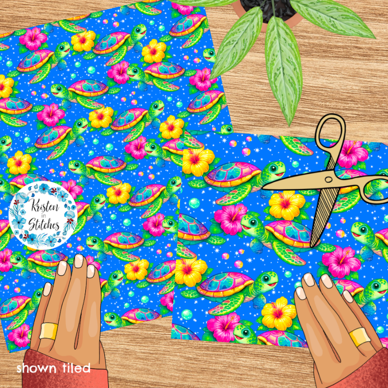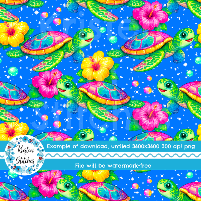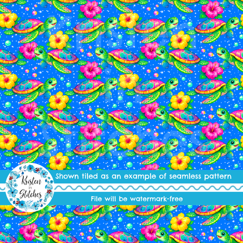 Tropical Ocean Paradise Seamless Pattern, Rainbow Sea Turtles