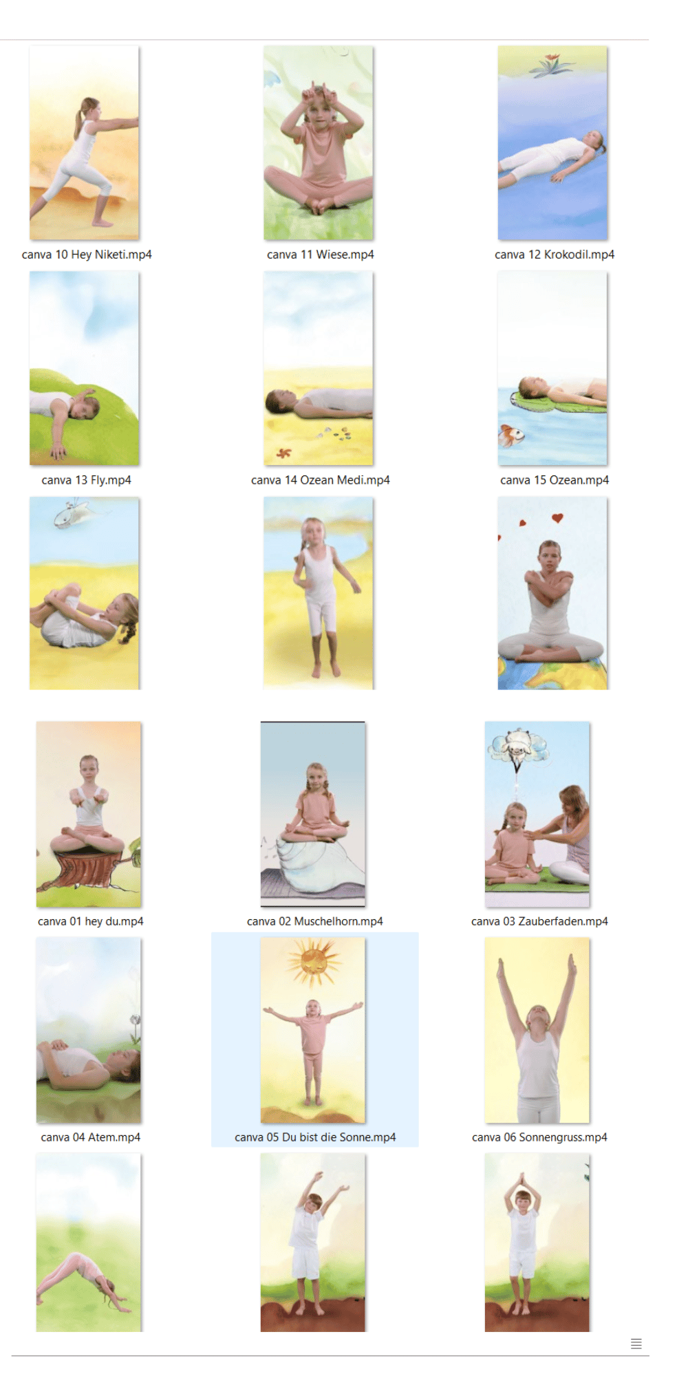Hier findest du kreativ, professionell und mit viel Liebe gestaltete Yoga-Flows zu bewegten Yogaliedern für Kinder. Geeignet für Kindergartenkinder ab etwa 1 Jahr in Begleitung ihrer Eltern sowie für Kinder im Grundschulalter.