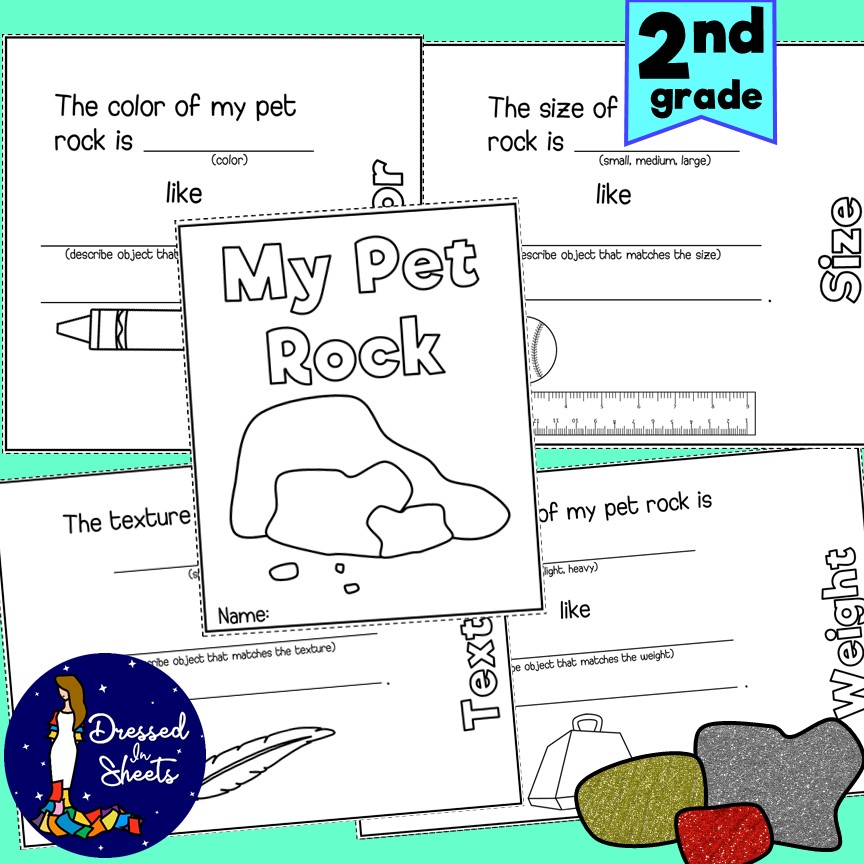 This is an organized printable booklet that allows students to find their ideal pet rock. They will describe what color their pet rock will be and compare it to another object that matches the color they describe, the same will apply towards the rock size, texture and weight.