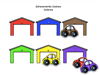 Hoja de trabajo con 6 garages donde se estacionan 6 carritos de colores diferentes.