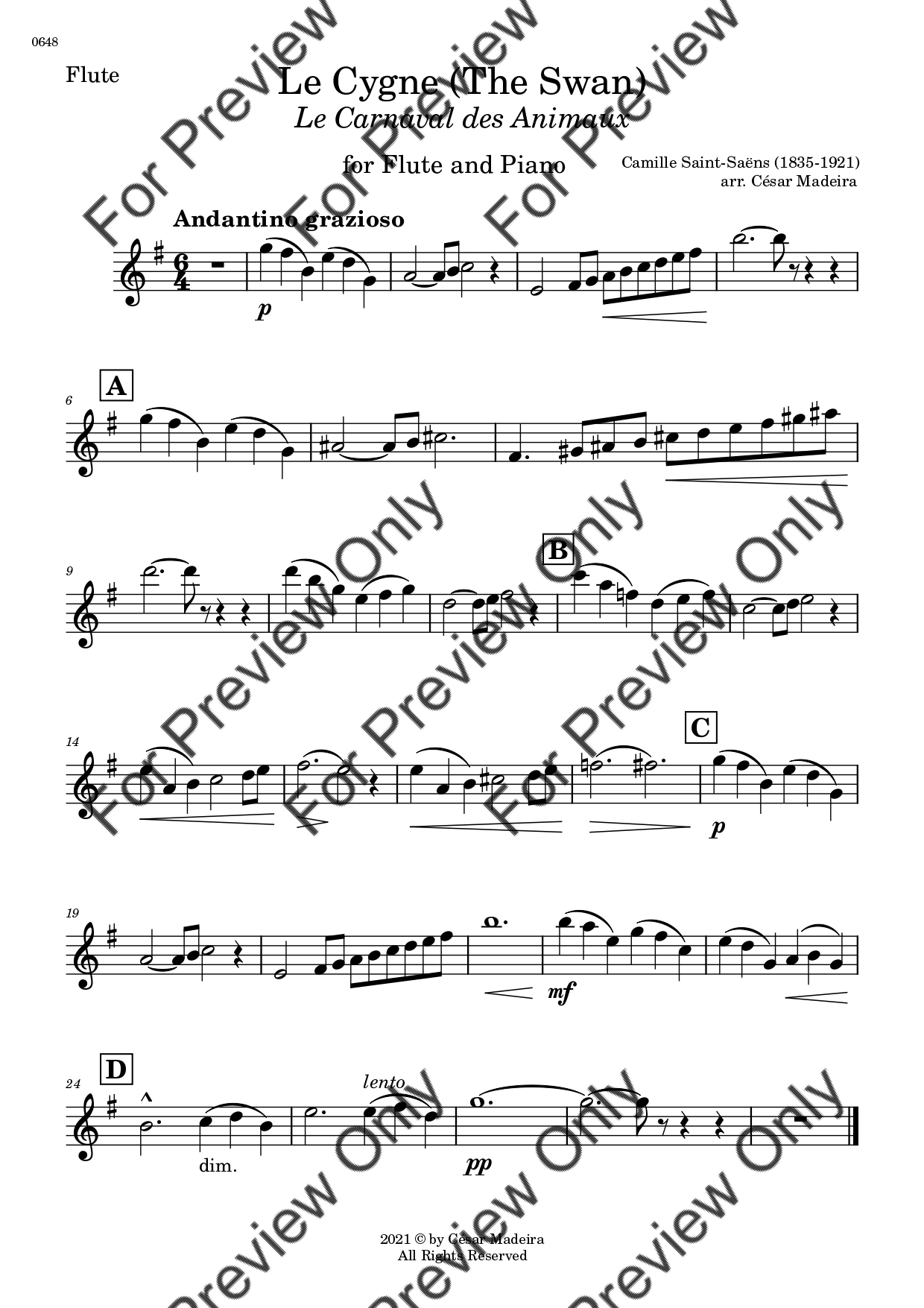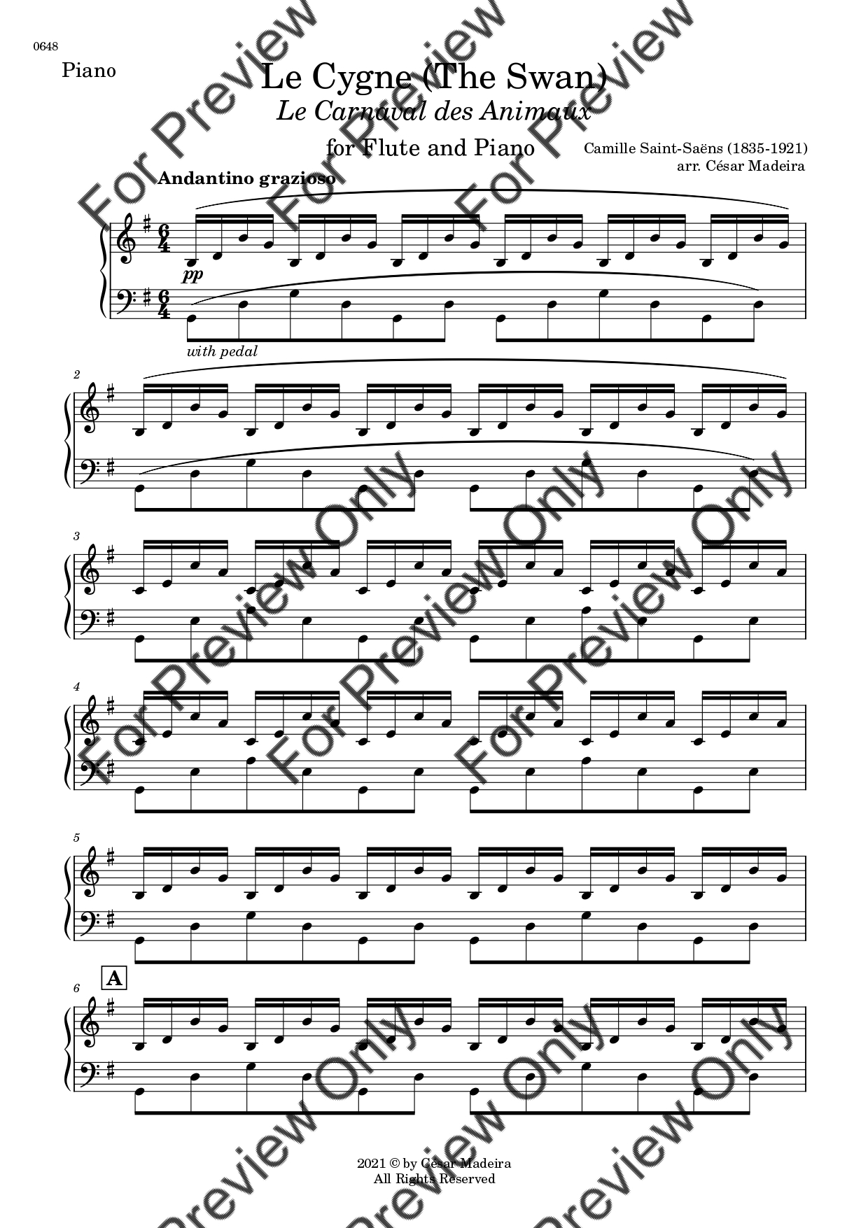 The Swan (Le Cygne) by Camille Saint-Saens. Arrangement for Flute and Piano. With Full Score and Individual Parts. Have fun!
