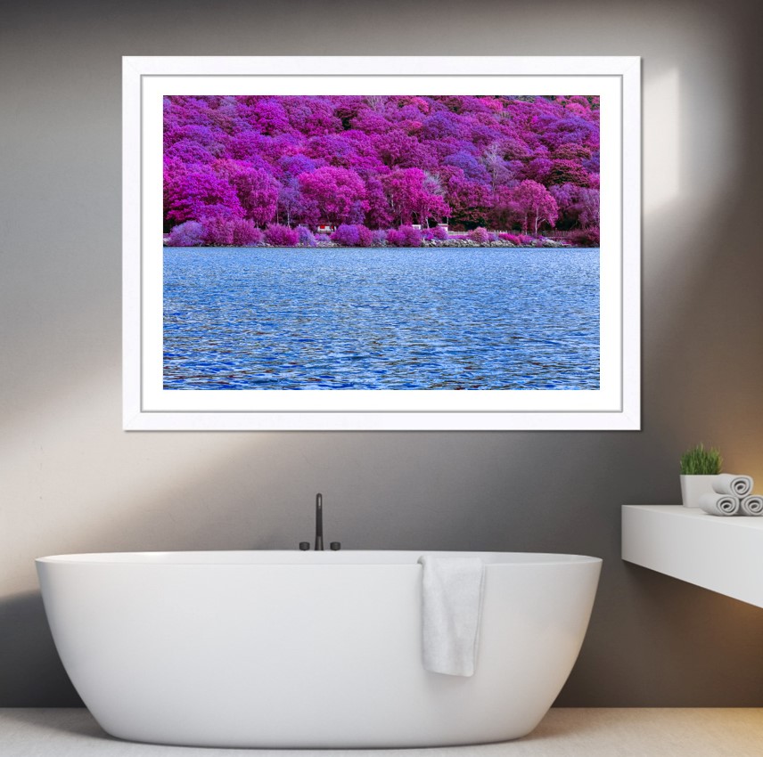 This zany image captures the balance between the water of Llyn Padarn and surrounding woodland. Through the trees, you can glimpse part of the Llanberis Lake Railway, a popular and well-kept tourist attraction in this stunning Snowdonia setting.