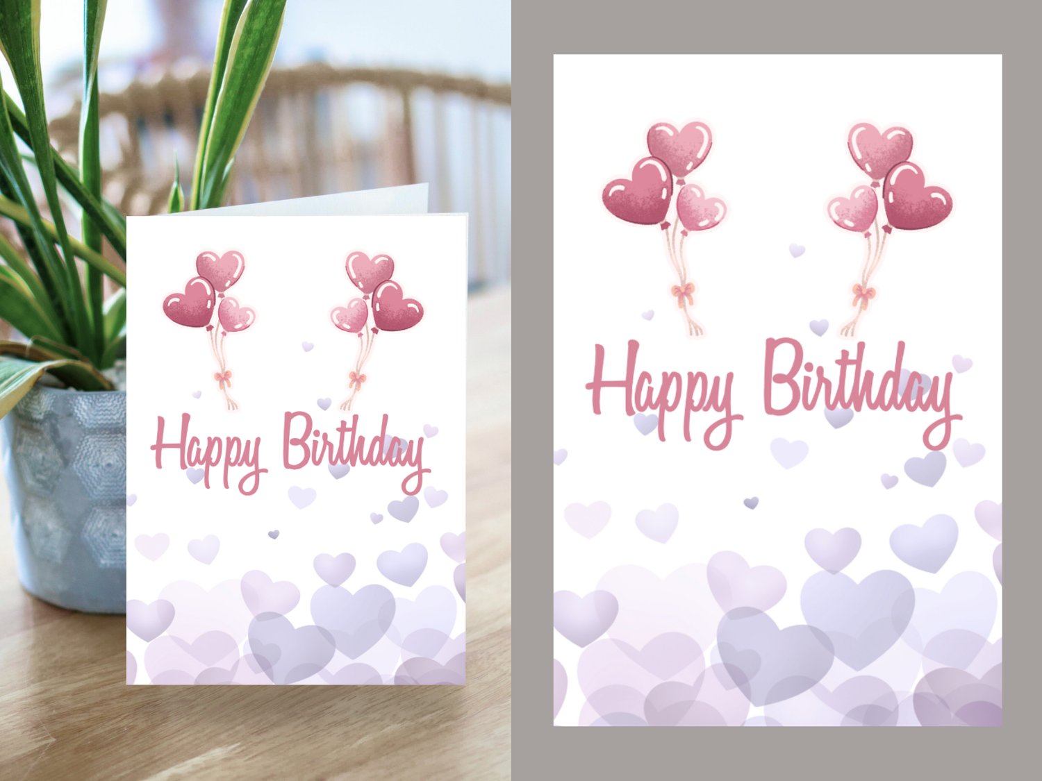Lavender Hearts Birthday Card – Printable 5x7" Folded Card
