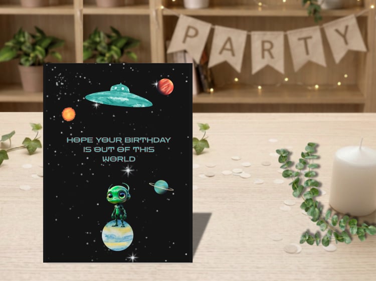 • Designed to print on standard 8.5" x 11" white cardstock – trims down to 5" x 7" when folded