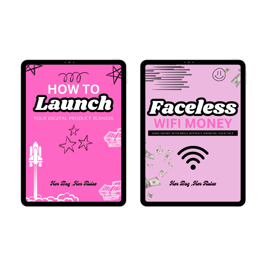 This Bundle Is Perfect For The Grlboss That Is Ready To Launch Her Digital Product Business! It Includes The How To Launch Your Digital Product Business Guide + The Faceless Wifi Money Guide. BOTH Products Come With RESELL RIGHTS, Meaning That You Can Edit & Resell For 100% Profit.