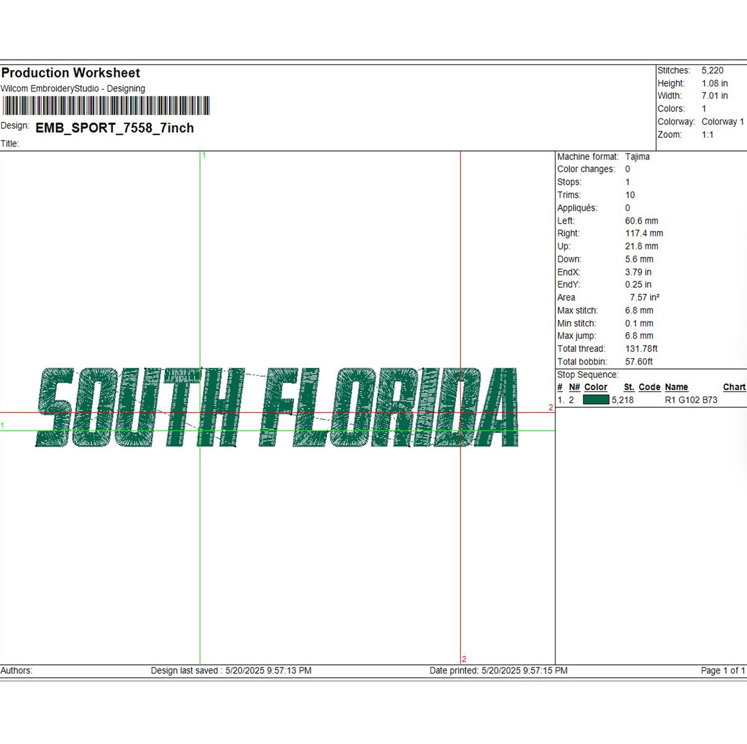 NCAA South Florida College Football Team Wordmark Logo Embroidery Designs, NCAA South Florida Bulls Machine Embroidery Files, NCAA Logo embroidery designs, Ncaa South Florida Bulls Logo, Digital Download