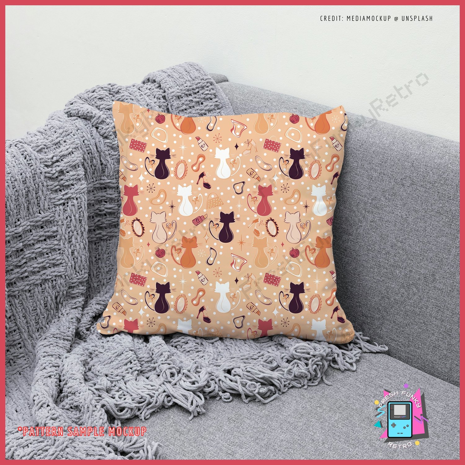 This Mid-Century inspired pattern gives both a playful and feminine vibe! It comes available in two styles, with or without the polka dots. Perfect for anyone who loves retro patterns, cats, and a touch of feminine flair.