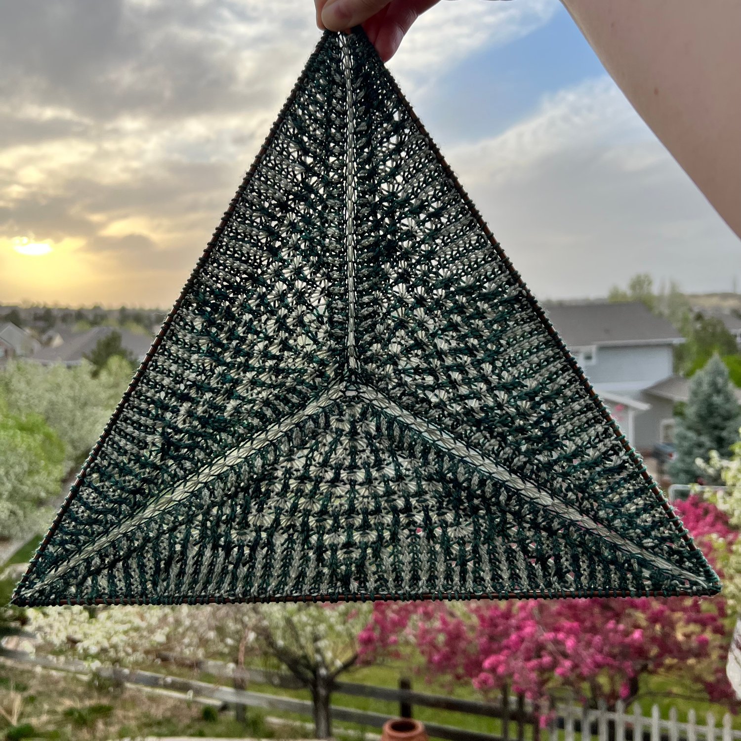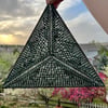 An equilateral triangle frame 14 in/35.6 cm to a side. The frame may be sourced wherever available. I purchased mine from UnfetteredCo’s etsy shop (http://www.etsy.com/shop/UnfetteredCo).