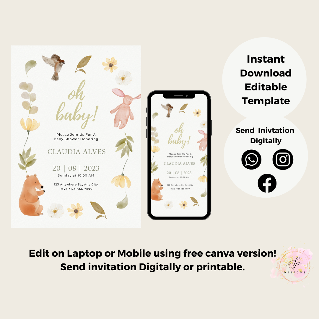 Invite your guests to join in the magic of your special day with this whimsical and Editable Oh Baby Shower Invitation, Gender Neutral Baby Shower Invitation, Oh Boy Baby Shower Invitation Template, this printable invite sets the perfect tone for a mystical celebration.