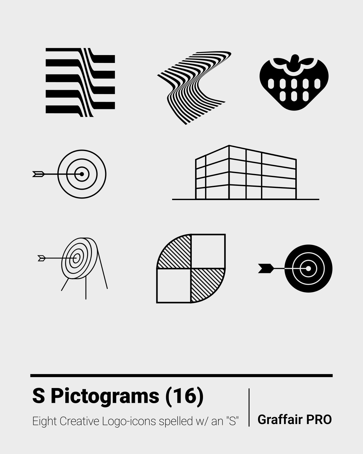 S Pictograms (16): The 16th set of 8 pictograms, each beginning with an "S".