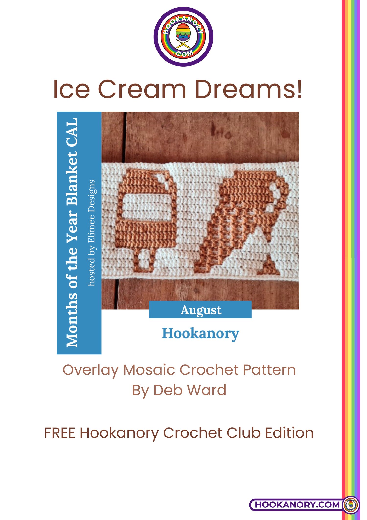 This pattern was designed as part of the Months of The Year Mosaic Blanket CAL hosted by Elimee Designs for which my design ‘Ice Cream dreams!’ is the August pattern strip!