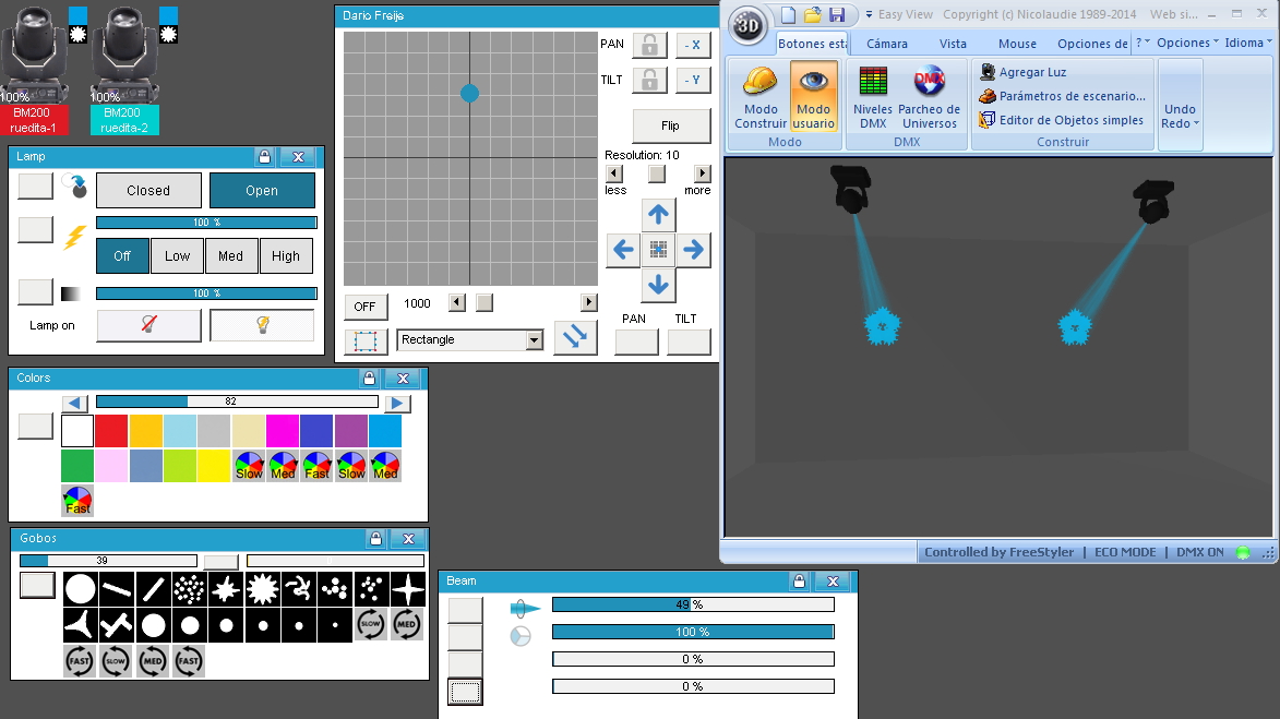 Esta Librería SSL2 está optimizada para trabajar con Magic 3d Easy View. Es decir para ver una representación 3D de las secuencias que estemos realizando con Freestyler, QLC+ o cualquier otro soft que se conecte con Magic 3d.