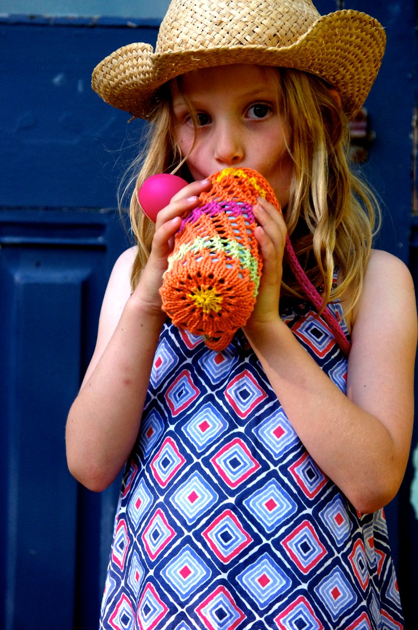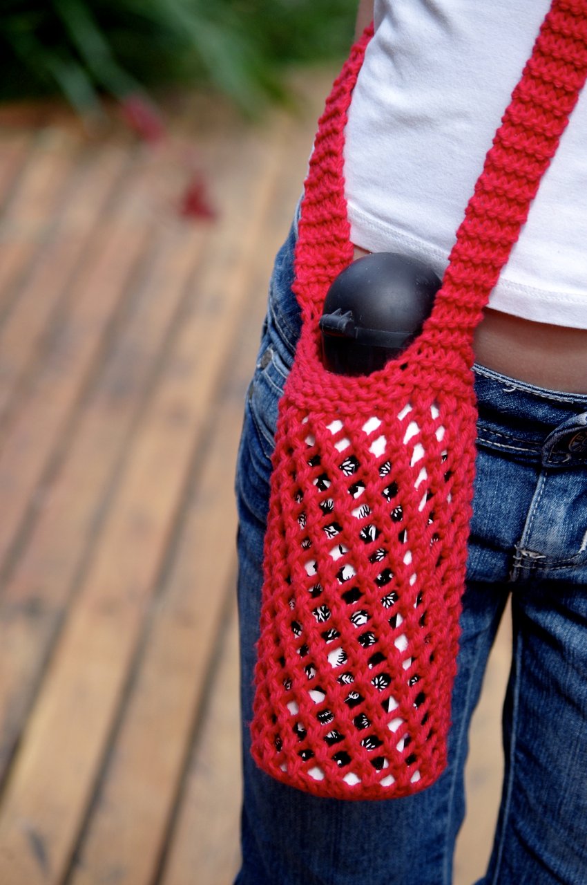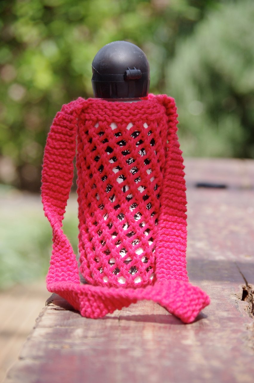 The mesh lace is super-dooper stretchy and will fit everything from a boutique beer to a nice chunky water bottle! A great stashbuster or gift knit. The whole project can be knit in a couple of hours and requires less than a ball of yarn.